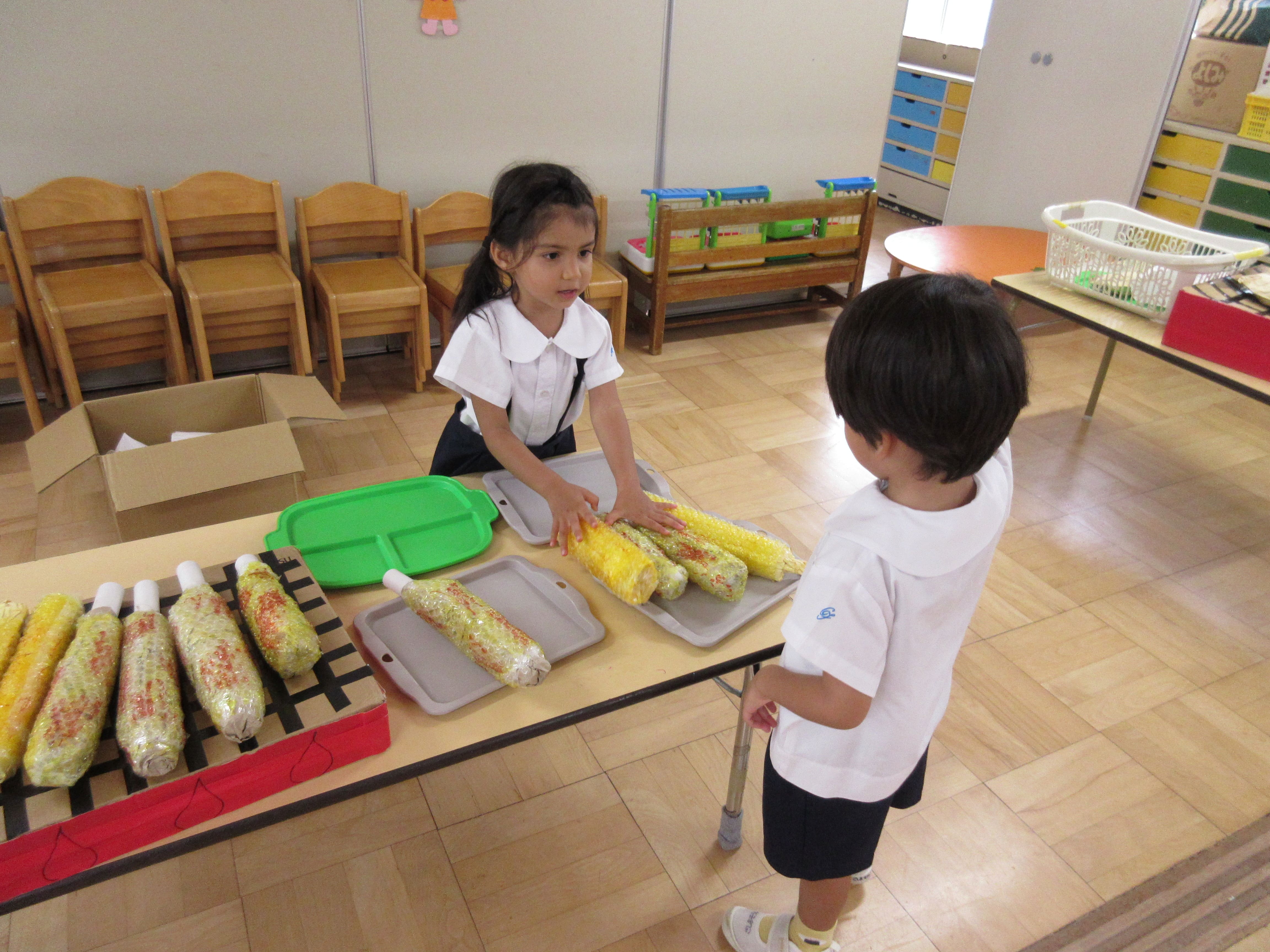 「焼きトウモロコシ1本ください!」「どうぞ♡」