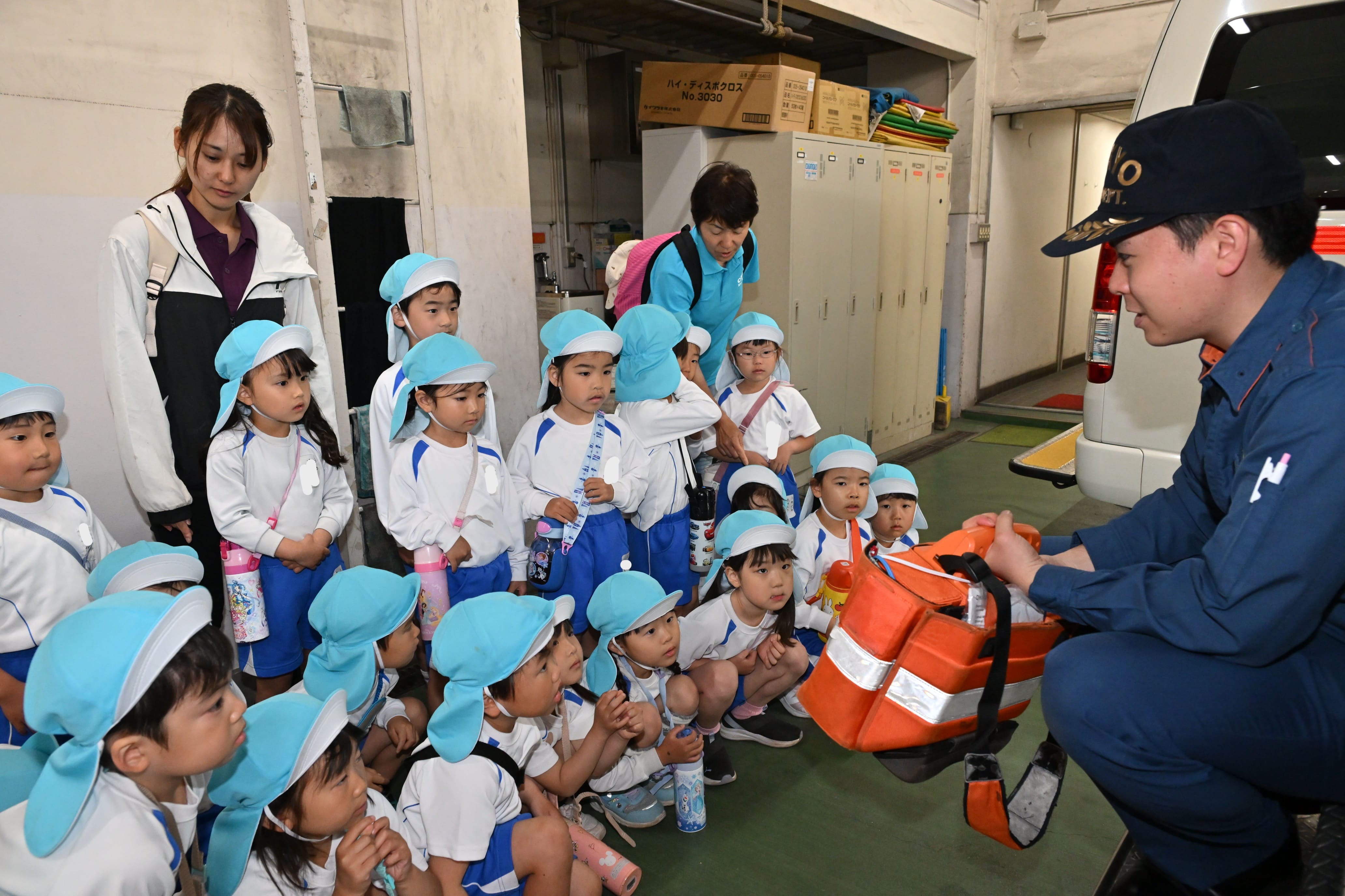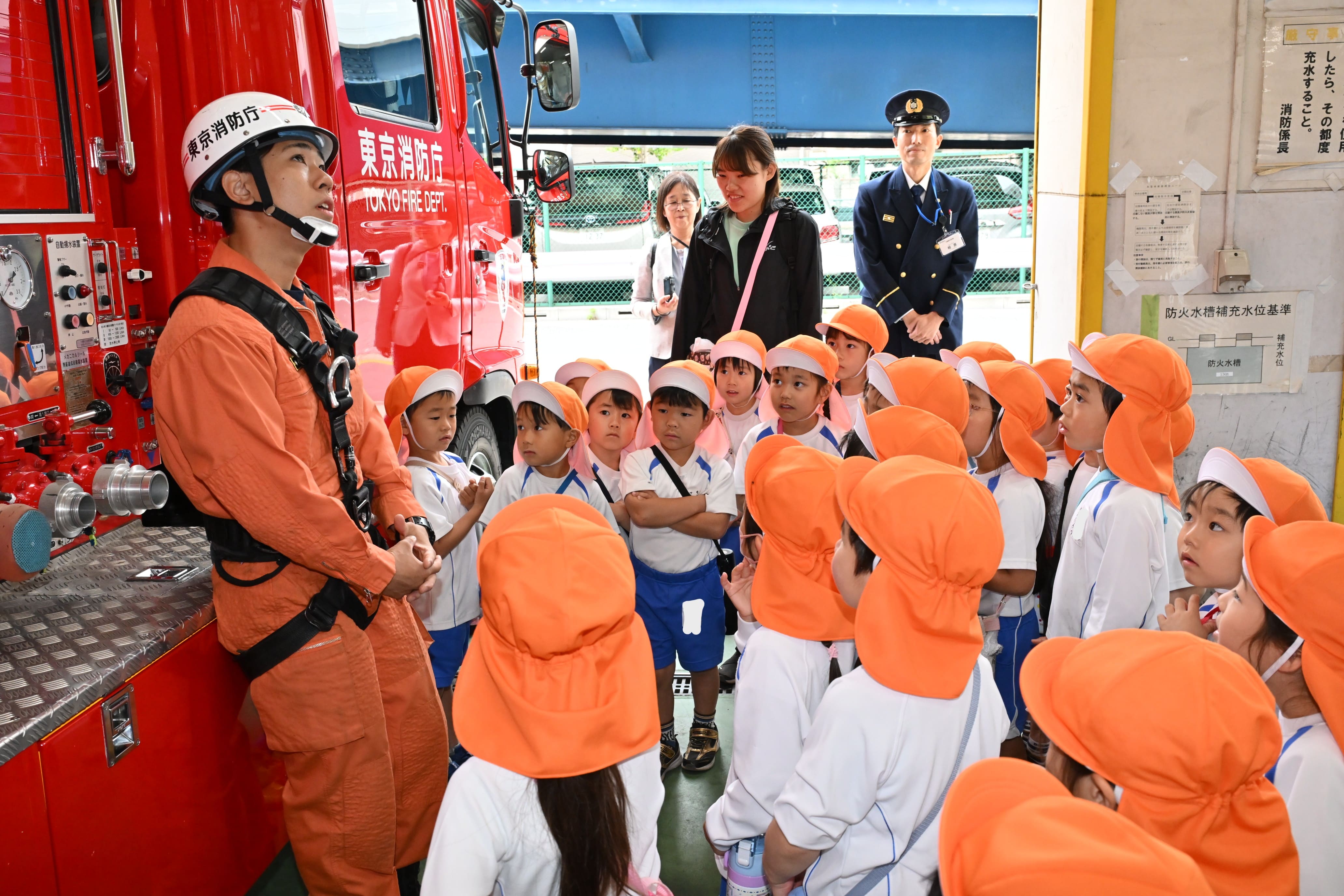 田園調布消防署見学に行き、消防車や救急車の中を見せてもらったり、消防士さんにお話を聞いたりして、地域で働く人々の役割を知り、感謝の気持ちをもつことができました。